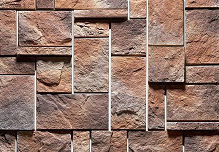 Массивный прямоугольный декоративный камень разных размеров с грубо обработанной поверхностью. "Средневековый замок" придаст зданию строгий, монументальный вид. Оригинальный вариант для отделки фасада.